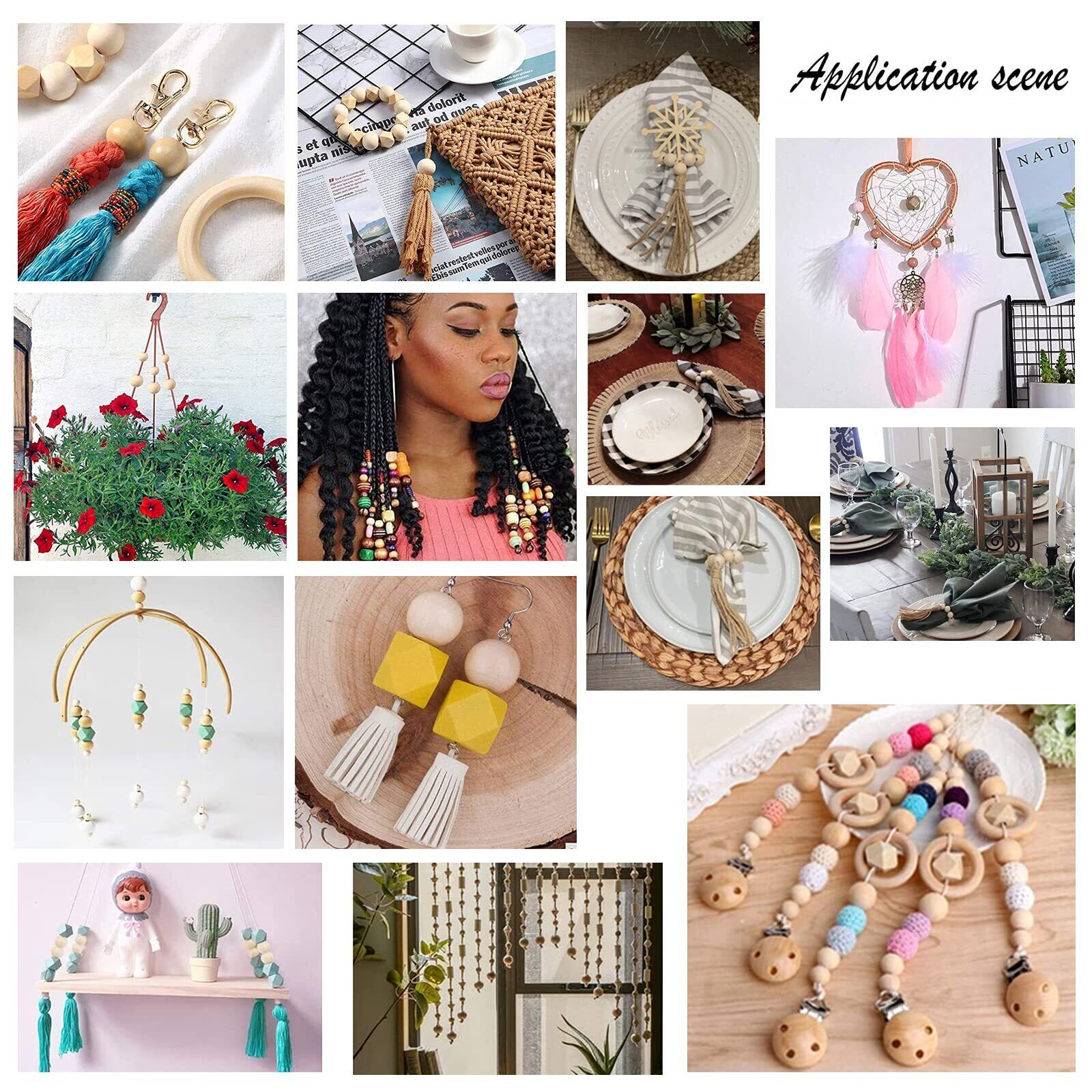 多機能:工芸品用の木製ビーズはロープで接続できます、服を飾るために使用し、ドリームキャッチャー、マクラメ、ボタンなど、教室や家庭で工芸品を作るのに最適です.