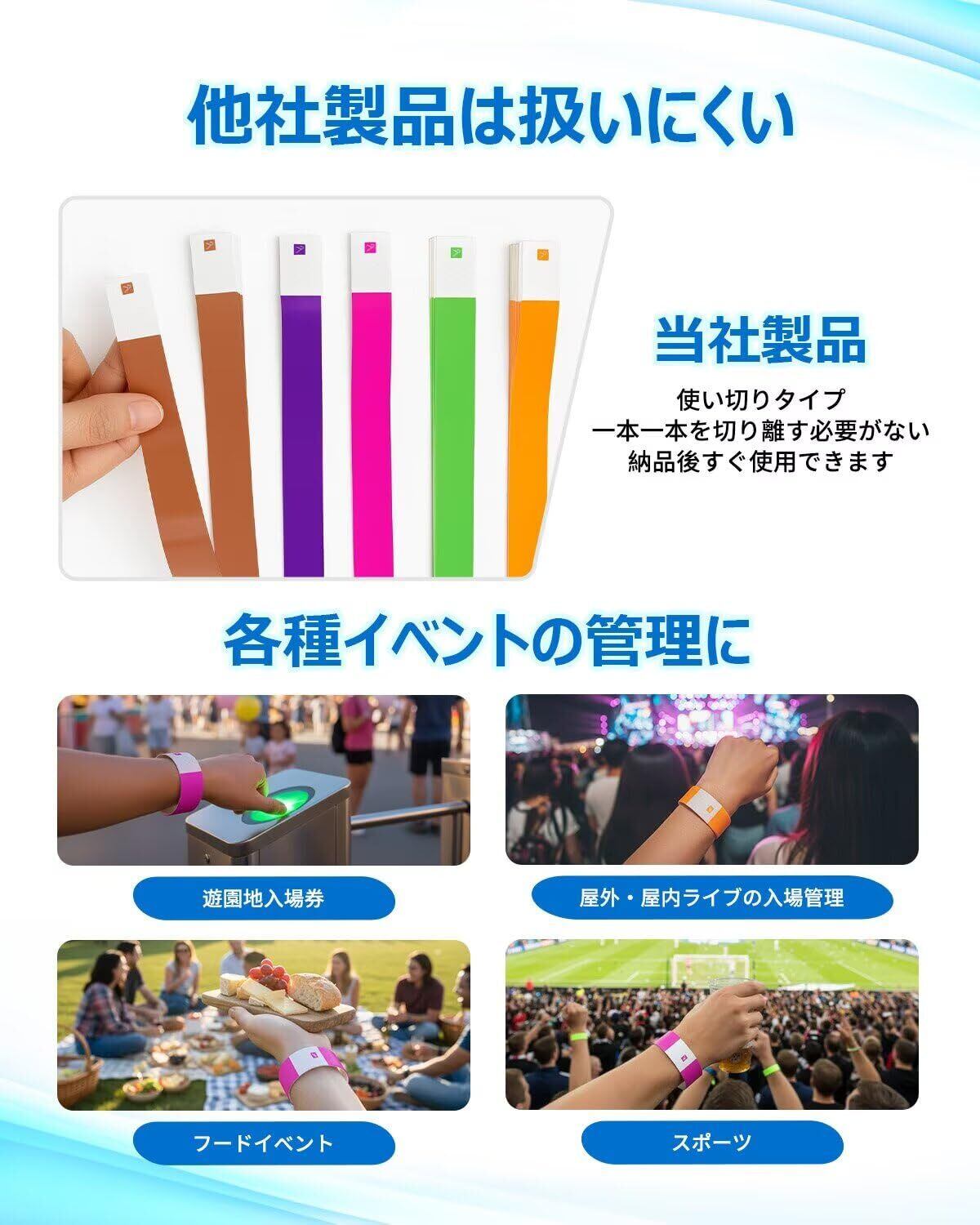 【入場券の代わりになる、使い捨て入場リストバンド】遊園地入場券や、スポーツフェスティバル、コンサート、野外フェス、屋外・屋内ライブの入場管理など、様々なイベント時に手首に装着して活用出来できます。