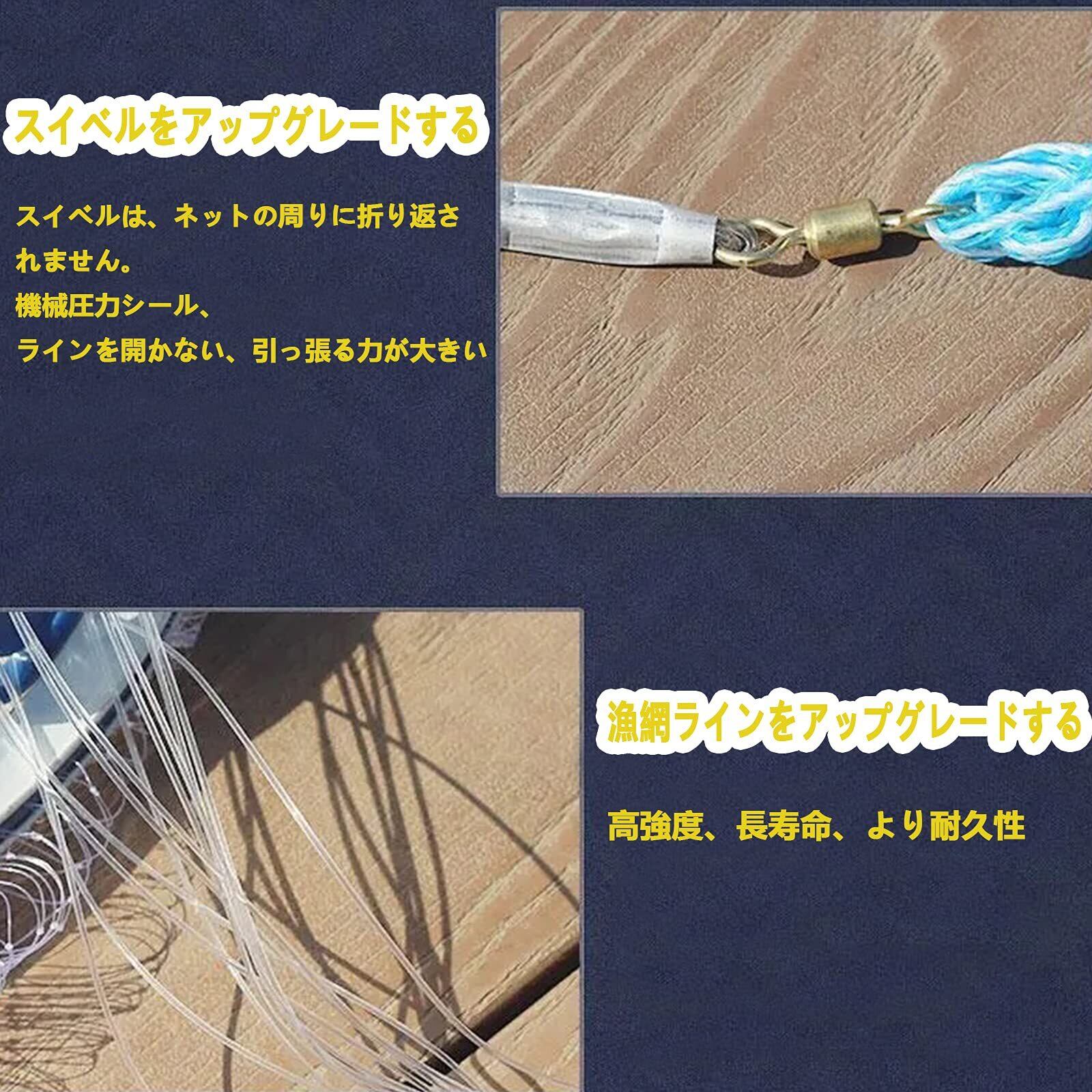 【高密度メッシュ網目&速く沈める】スチールドロップの重量を増やし、ネットからすばやく降りて、釣り効果を高めます,高精度ナイロンメッシュメッシュサイズは1本指サイズで、ダメージが少なく魚が多いです。季節を問わず、アウトドアフィッシングやキャンプにとても便利な釣り道具で、海岸やボート、川などから魚がいると思う場所に投げることができます。