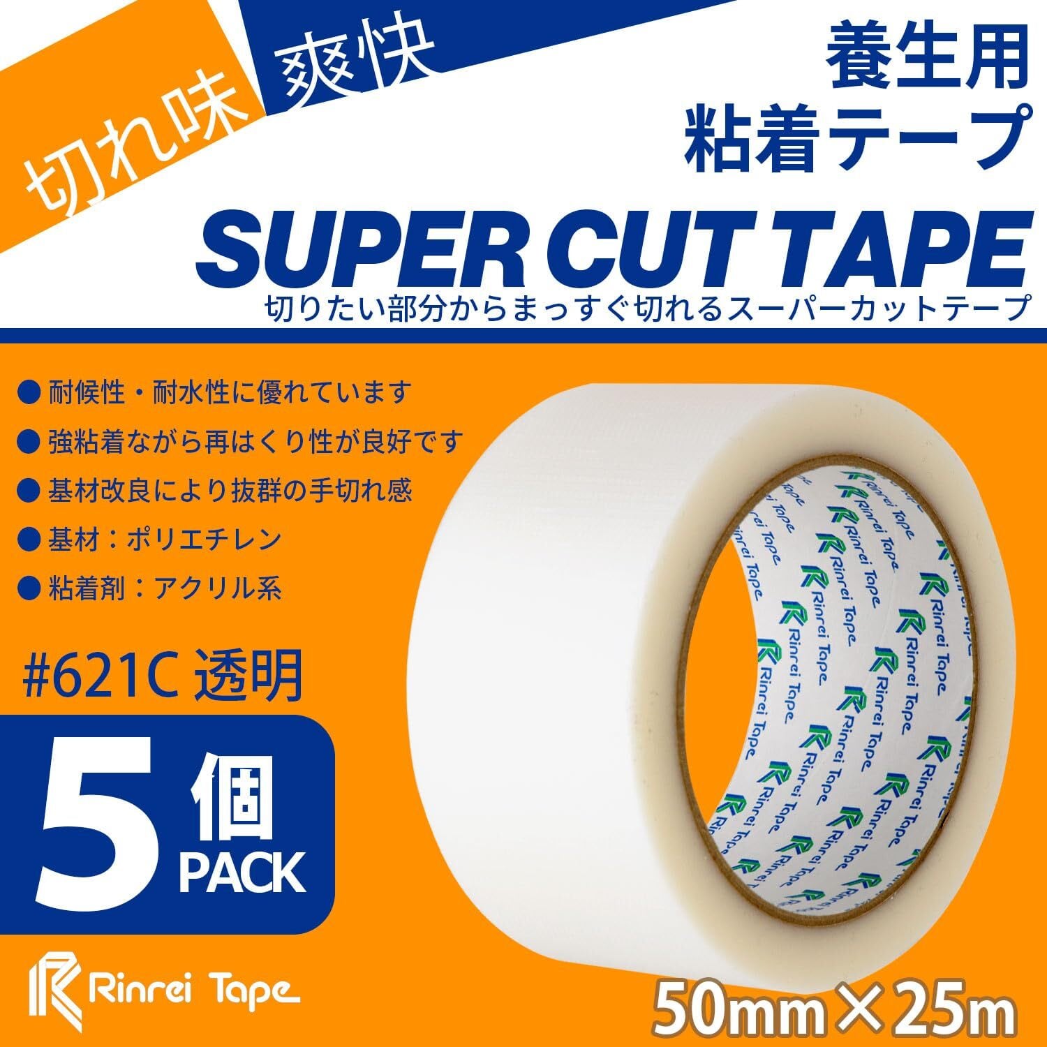リンレイテープ 養生テープ PEテープ 50mm×25m 5巻 透明 621C_5