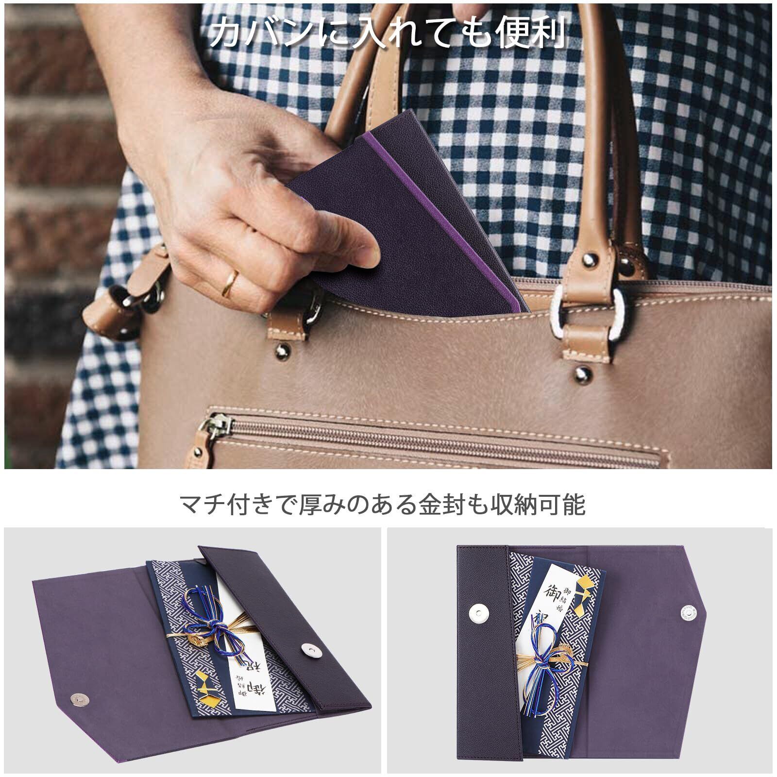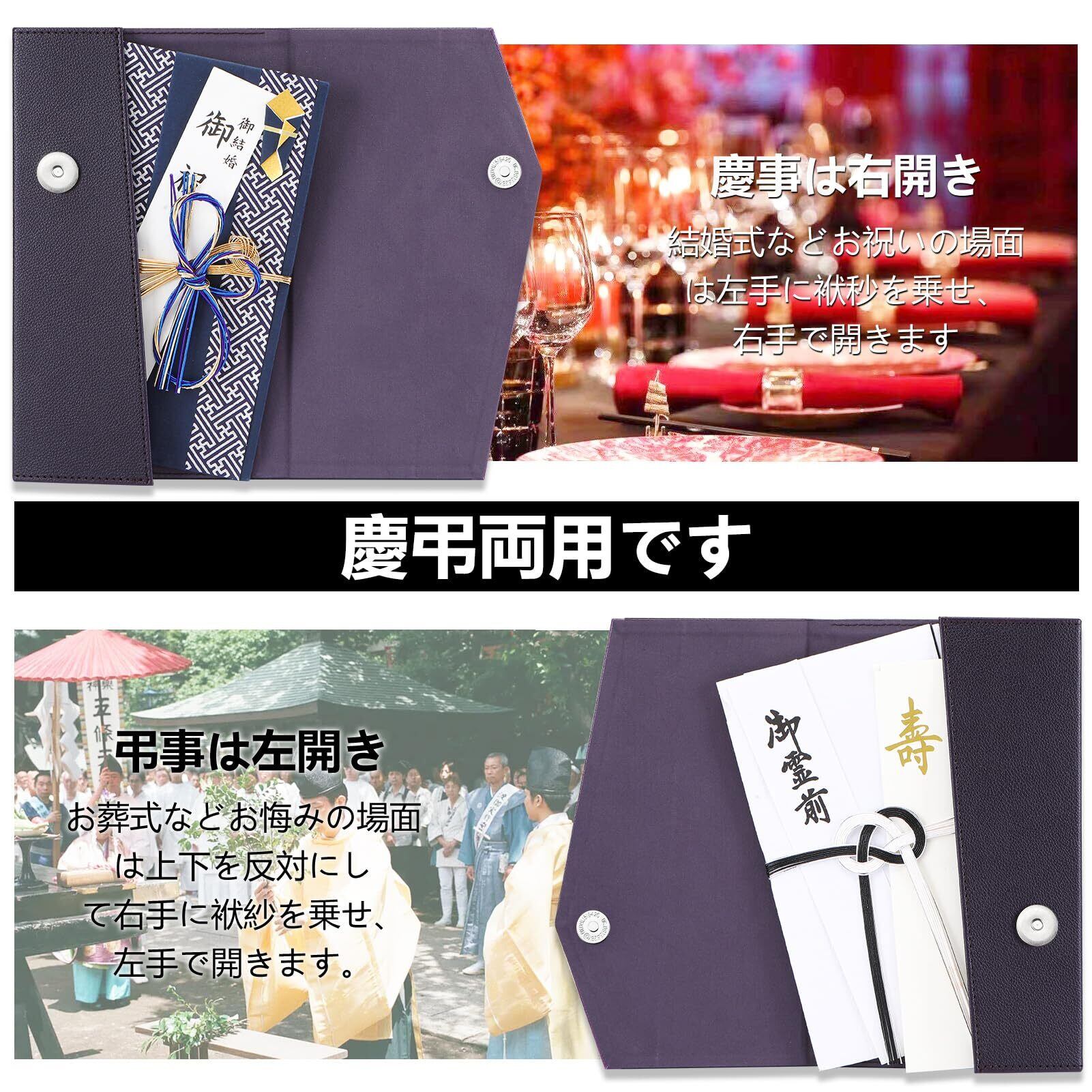 【新春セール】ふくさ 袱紗 慶弔両用 金封 ちりめん 男性 女性 結婚式 お葬式 い レディース メンズ 香典祝儀袋 (レザー) (紫×京紫)