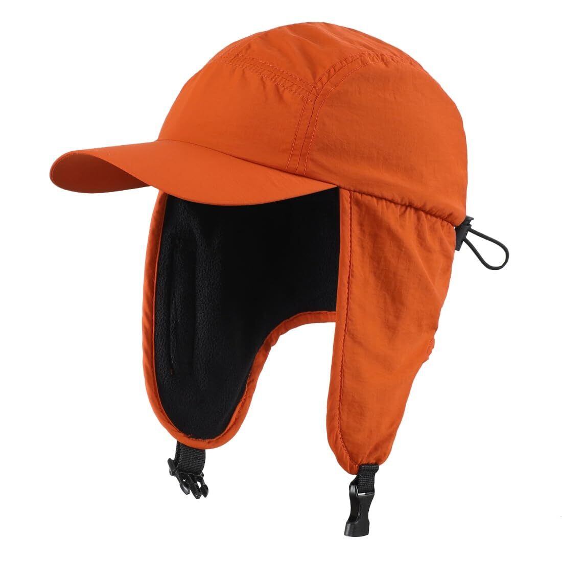 暖かいフリース裏地のメンズ耳あて付き帽子は、耳あてが折りたたむと、ランニングキャップになる