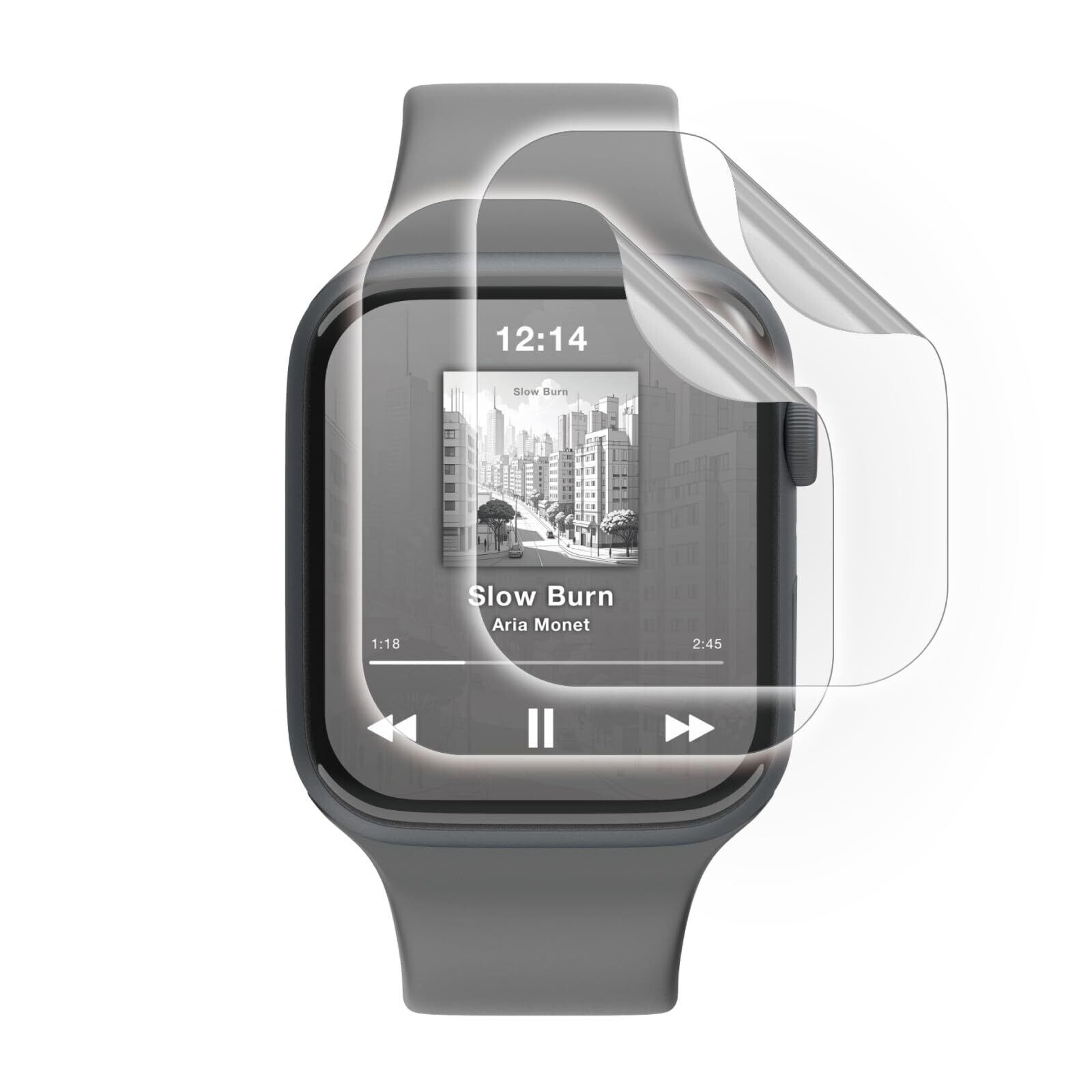 非常に柔らかいウレタン素材を採用することにより、画面の湾曲部分まで保護することができ、Apple Watch独自のデザインを損なわず、まるでフィルムを貼っていないような仕上がりになります。