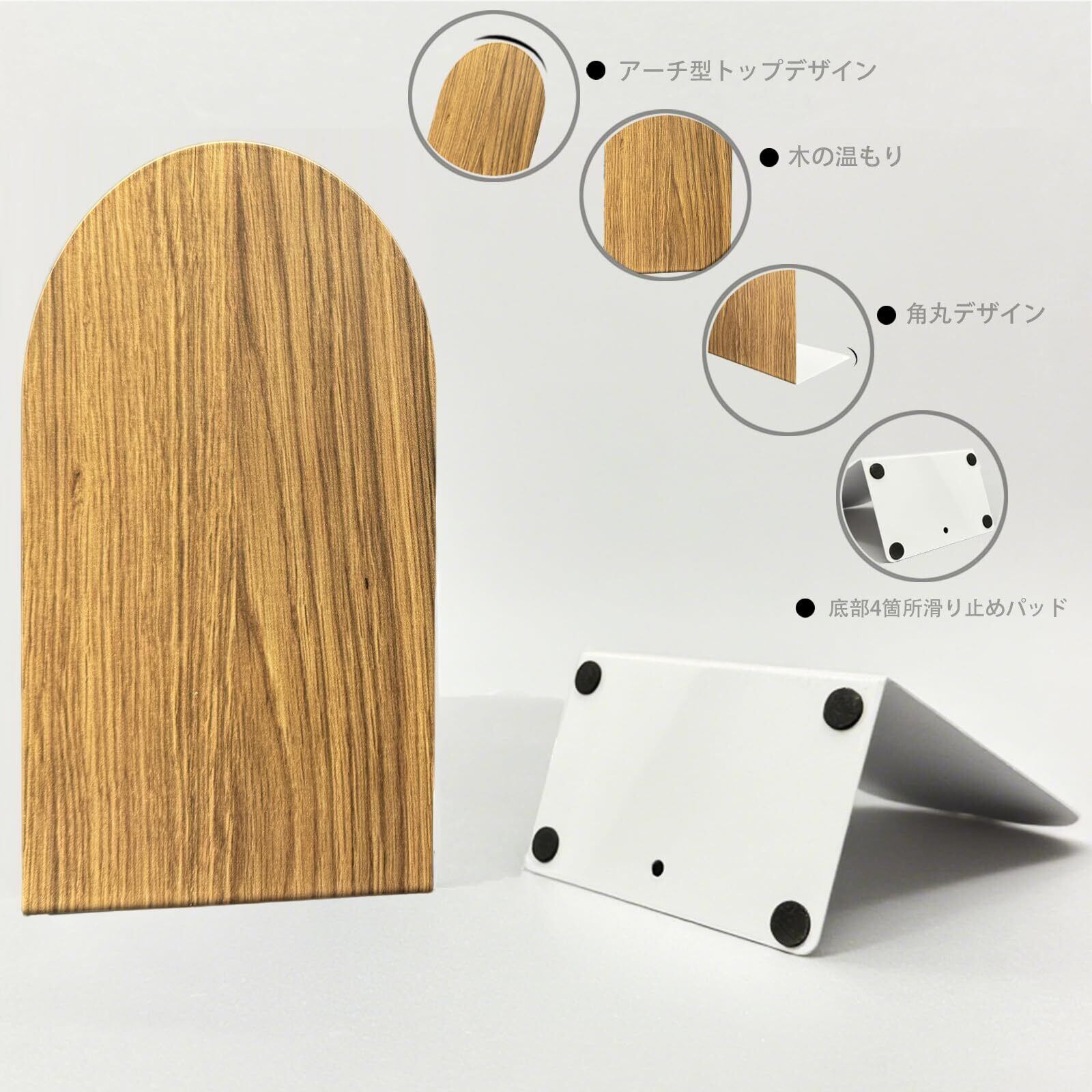 本を読むひとときは、心を落ち着かせてくれる至福の時間。 このブックエンドは、そんな時間を、より自然で温かなものにしたいという想いから生まれました。 鉄の確かな強度に、温もりを感じる木目調をあしらったデザインは、ナチュラルでレトロなインテリアにぴったり。あなたの愛蔵する本を、優しく、そしてしっかりと支え続けます。 安全性にも徹底してこだわり、全ての角を優しく丸く加工。触れた時に感じるなめらかな感触が、丁寧なものづくりの証です。 自然の温もりを感じさせるデザインは、ご自身用はもちろん、読書好きの方や、落ち着いた空間を好む方への贈り物としてもご好評いただけています。