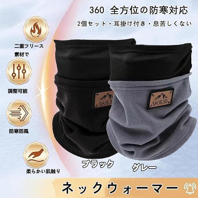 [xunbida] ネックウォーマー メンズ レディース 冬【2個セット・耳掛け付き・息苦しくない】裏起毛 伸縮性 柔らかい肌触り 暖かい 軽量 小顔効果 ネックウォーマー アウトドア/通勤/通学/スポーツ/バイク/登山/自転車/スキー/釣り/男女兼用