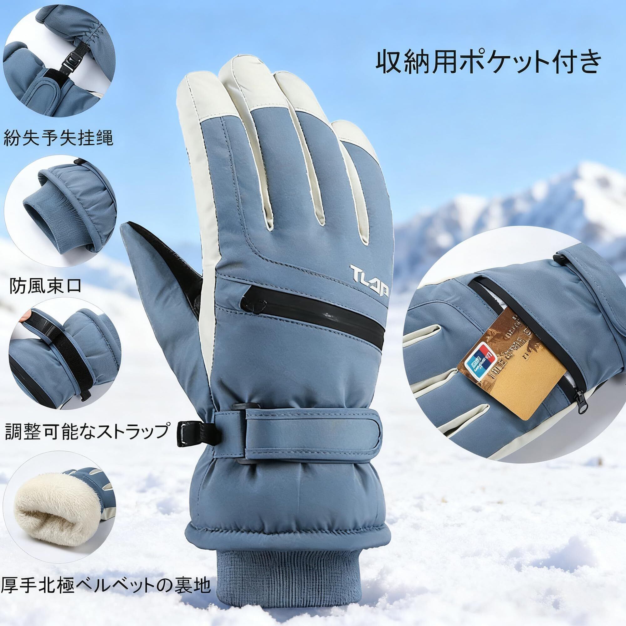スキーグローブ メンズ 防寒手袋 スノーボードグローブ 防寒グローブ スポーツグローブ 防水 防風 防寒 滑り止め タッチパネル対応 紛失予防 収納用ポケット付き 保温 厚手 通気性クライミング 除雪 アウトドア 登山