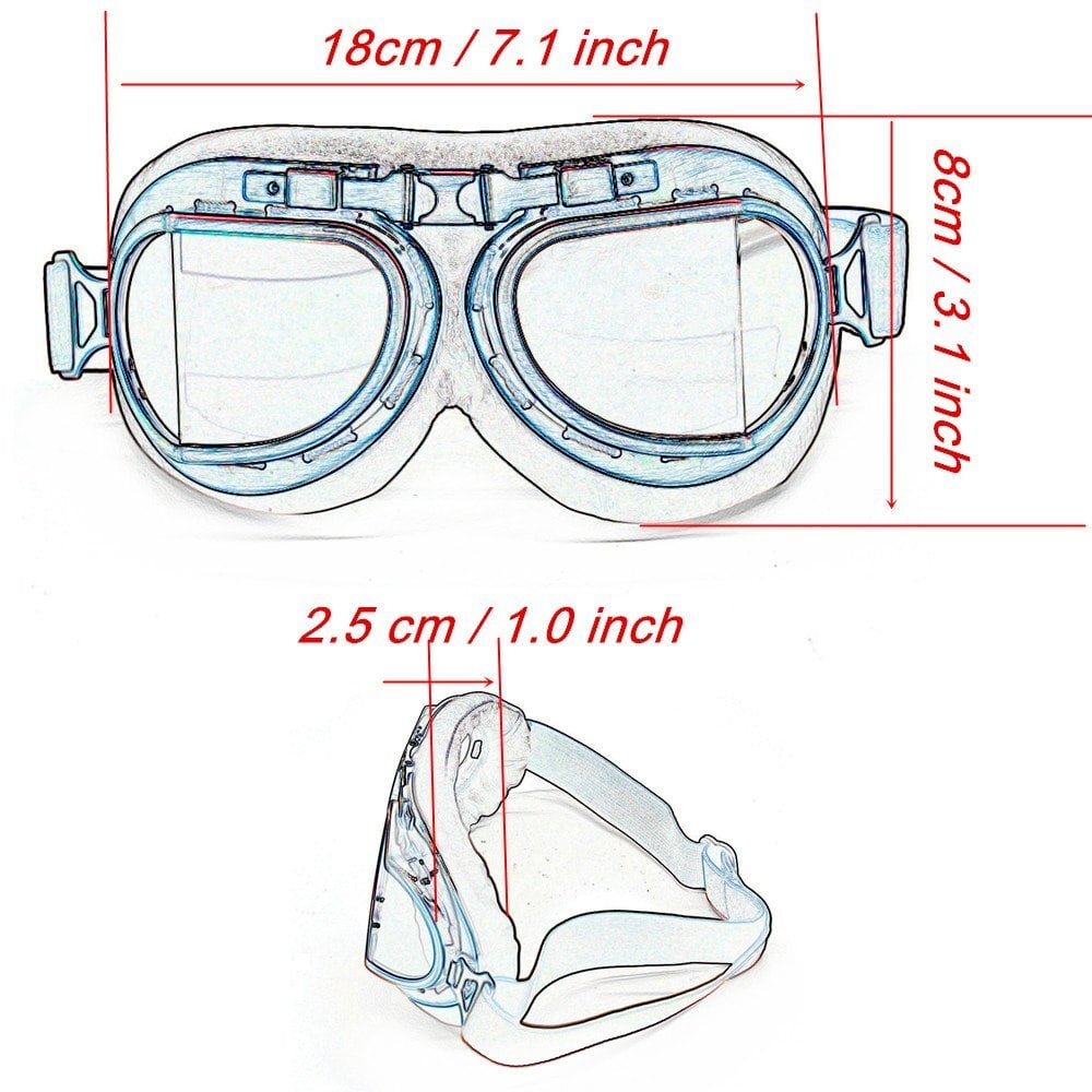 evomosa オートバイ モトクロス PCレンズ 折りたたみ式 スキー用ゴーグル 防風 防塵 レトロ ビンテージ ゴーグル 楕円 折りたたみバイク用ゴーグル (ブルー)